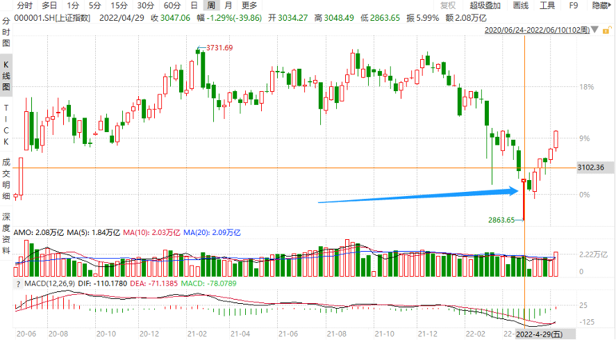 以2022年最极端的4月份下旬为例,如果以日度波动做投资决策,很多人很容易在市场底部丧失信心,底部割肉。但如果你以周度区间作为决策依据,那会发现,4月25日至4月29日、行情最极端的这周,虽然指数周中最大下挫6%,但最终只收跌1.29%。这就可以在很大程度上避免了杀跌出局,从而享受到后续的强劲反弹!