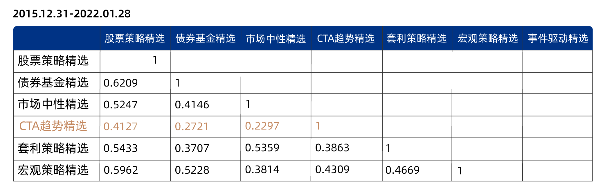 其二,我们需要CTA策略的原因是,它与其它主流策略的相关性比较低,从而极大地增强组合抵御风险的能力。尤其是以市场最为流行的股票策略为例,在市场的主要策略中,与其相关性最低的,就是CTA趋势策略(CTA策略中最主要的一种策略)。