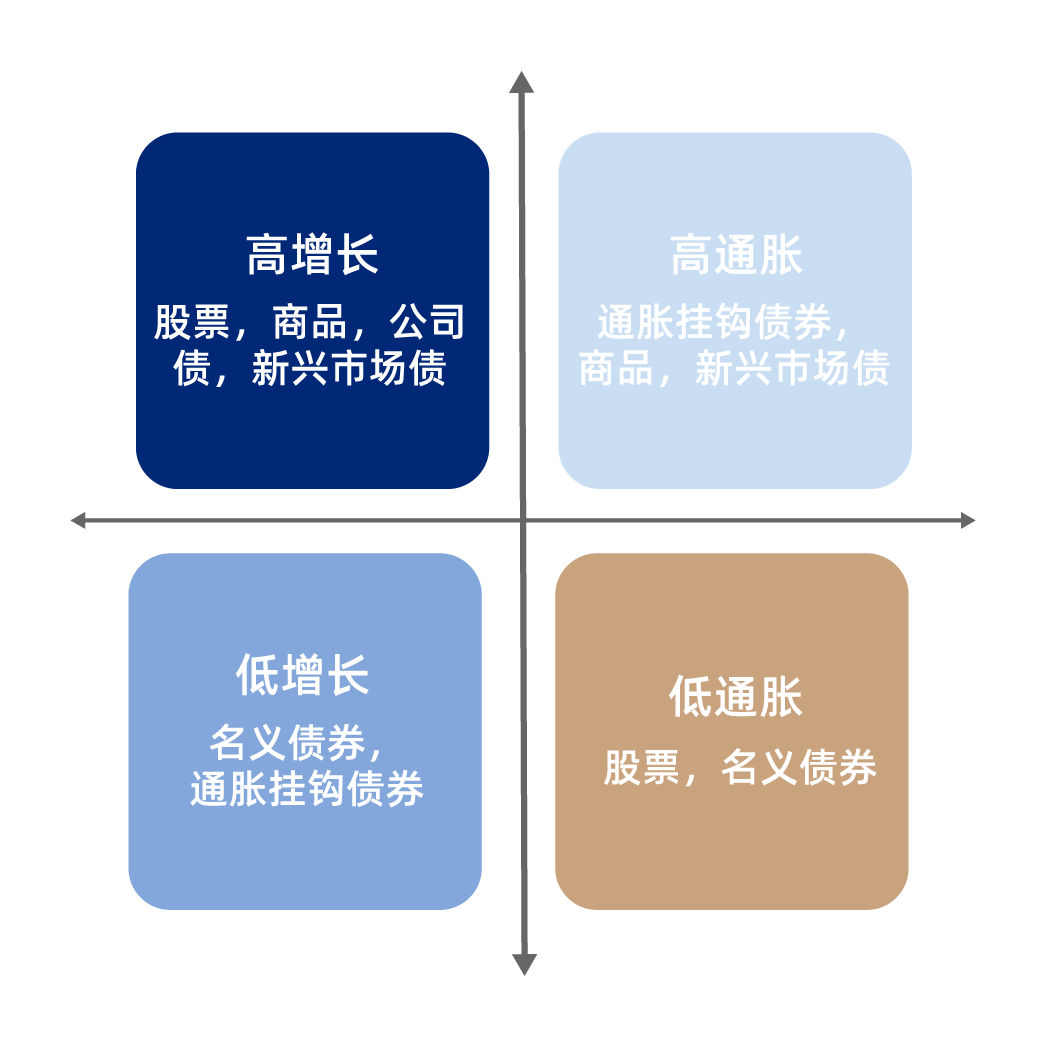 1、在经济上升期:股票、商品、公司信用债、新兴市场债券将有较好表现;