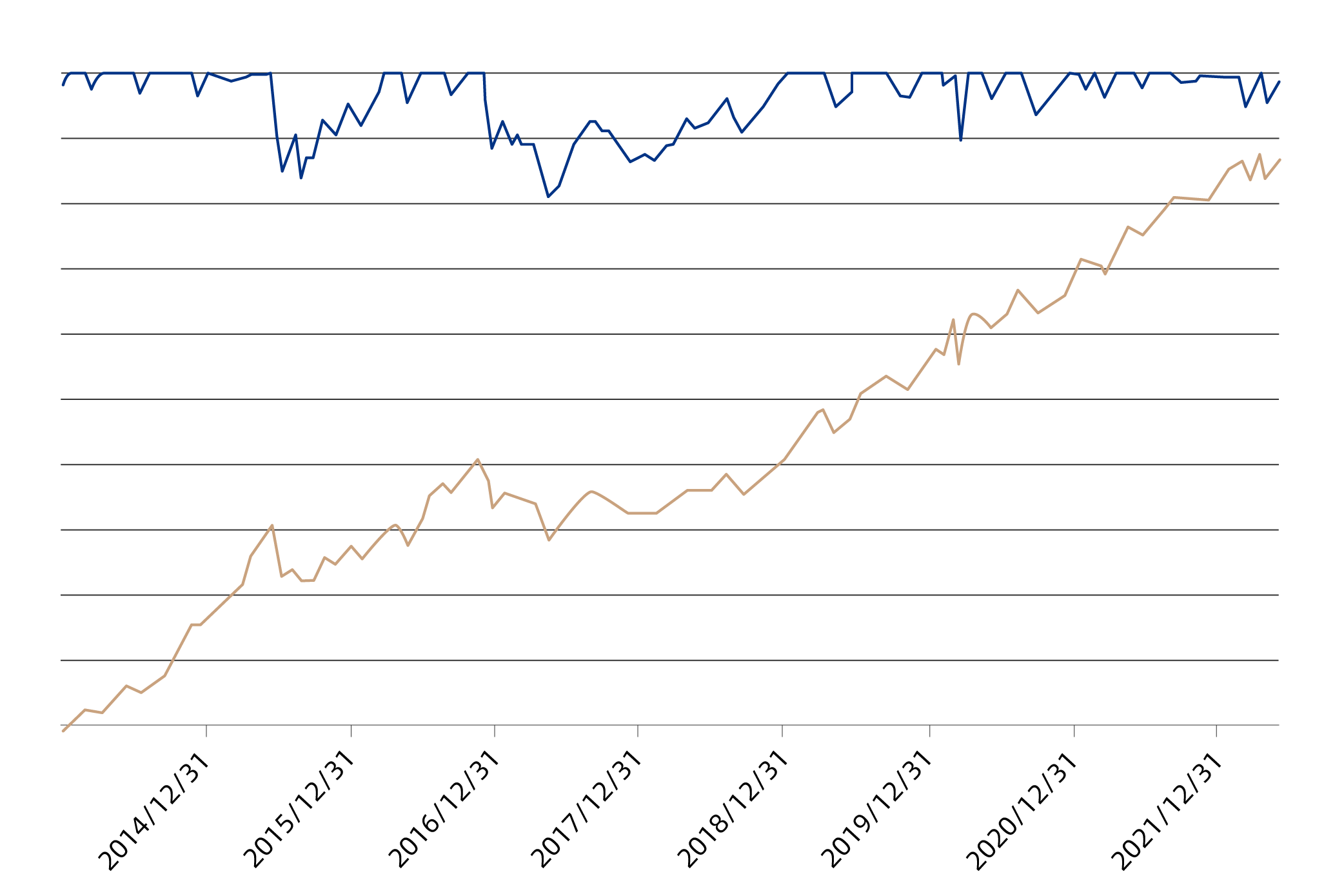 值得一提的是,这个策略不仅在国外有效,在中国也是有效的。下图是某全天候策略在中国市场的业绩和回撤曲线。出于合规要求,我们隐掉了具体数值,但大致可以看出,策略整体的表现可圈可点。背后的原因是:中国资产的内在增速和波动率还是比较高的,而且在未来可预见的周期内,仍然会有一定优势。